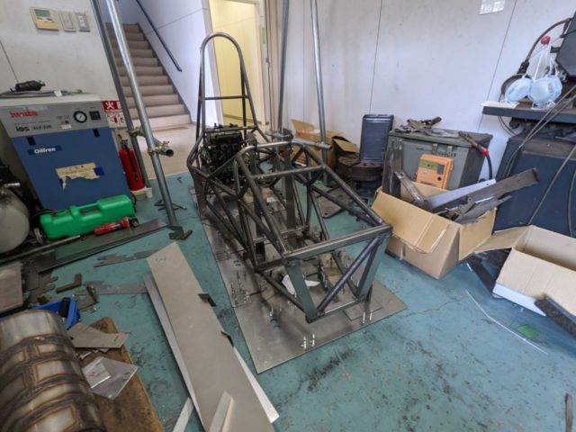弊社で切断したパイプが上記の写真のように組み立てられ、車体になろうとしている様子です。