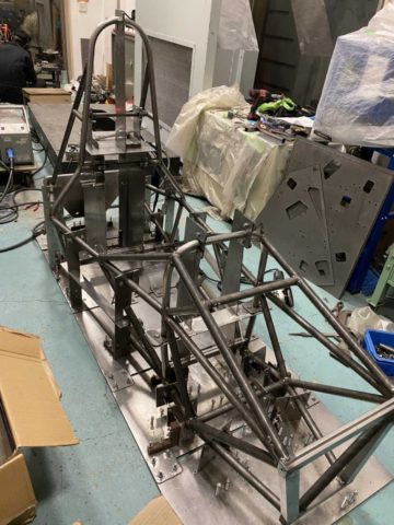 弊社で切断したパイプが上記の写真のように組み立てられ、車体になろうとしている様子です。