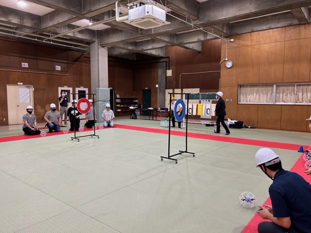 講習会では、小さなドローンを使ってのドローンサッカーと、大きなドローンで飛行練習をしました。